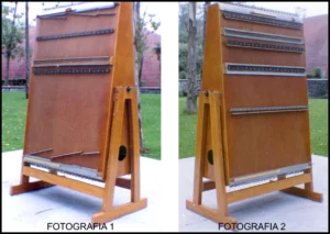 Ahora bien, las fotografías número 1 y número 2 corresponden al mismo instrumento, visto por sus dos caras, y es nada menos que el Arpa Microinterválica, único instrumento en el mundo capaz de producir novecientos nueve sonidos en nueve llamadas octavas, sin producir tonos ni medios tonos, cumpliendo hasta la última parte de la profecía de la siguiente manera: