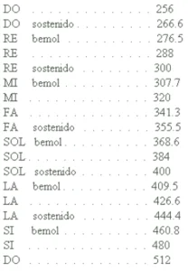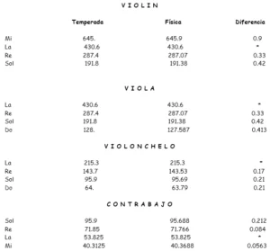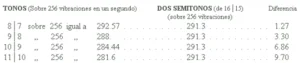 Como se ve, sólo la nota fundamental y su duplo no discrepan.