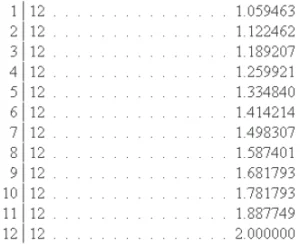 y los semitonos o dozavos de duplo, de un número a otro: