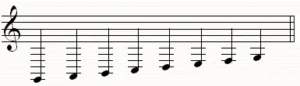 La escala diatónica quedará así en sus ocho llamadas octavas: