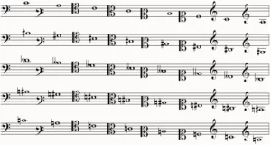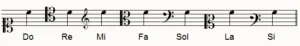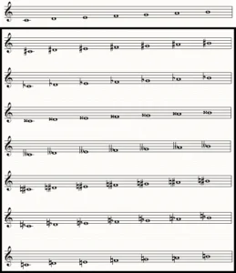 He aquí la escala diatónica en sus diversas alturas.